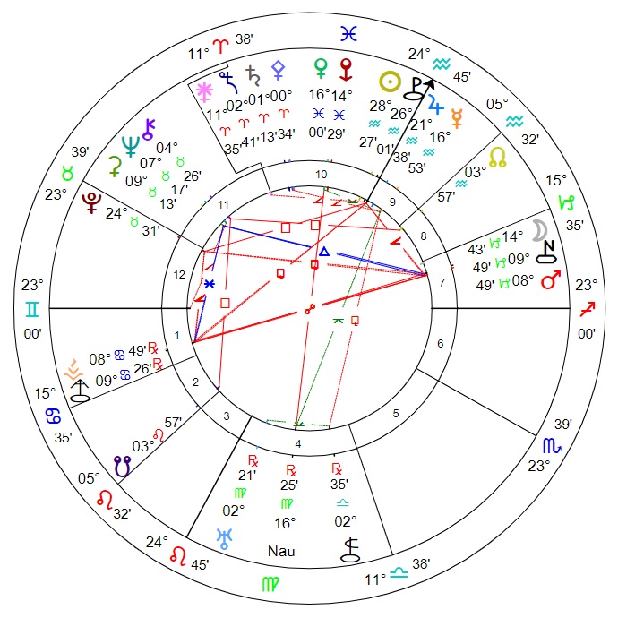 Discovery chart details: Noon chart. Nausikaa was quincunx Mercury and opposite Venus. Chiron square the Nodes. Mars-Nessus opposite Vesta-Asbolus, trine Ceres and sesquiquadrate Pluto. Pallas conjunct Saturn. Stellia in Capricorn and Aquarius.