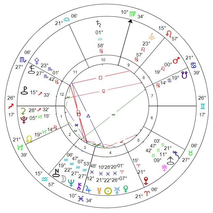 Discovery chart details: Balsamic chart with Ceres rising and Jupiter on IC. Stellium in Pisces. Dziewanna was trine Chiron-Neptune, sesquiquadrate Jupiter and semi-sextile Chariklo. Nessus semi-sextile North Node. Moon semi-sextile Sun, semi-square Venus and square Pallas; Sun trine Pallas. Mercury sextile Sedna and semi-sextile Eris; Venus semi-square Sedna; Mars sesquiquadrate Pholus. Uranus semi-sextile Neptune and semi-square Asbolus; Chiron-Neptune square Chariklo; Vesta square Pallas.
